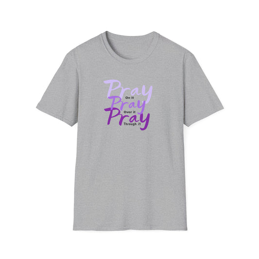 Pray on it, over it, and through it (gray/purple/black)